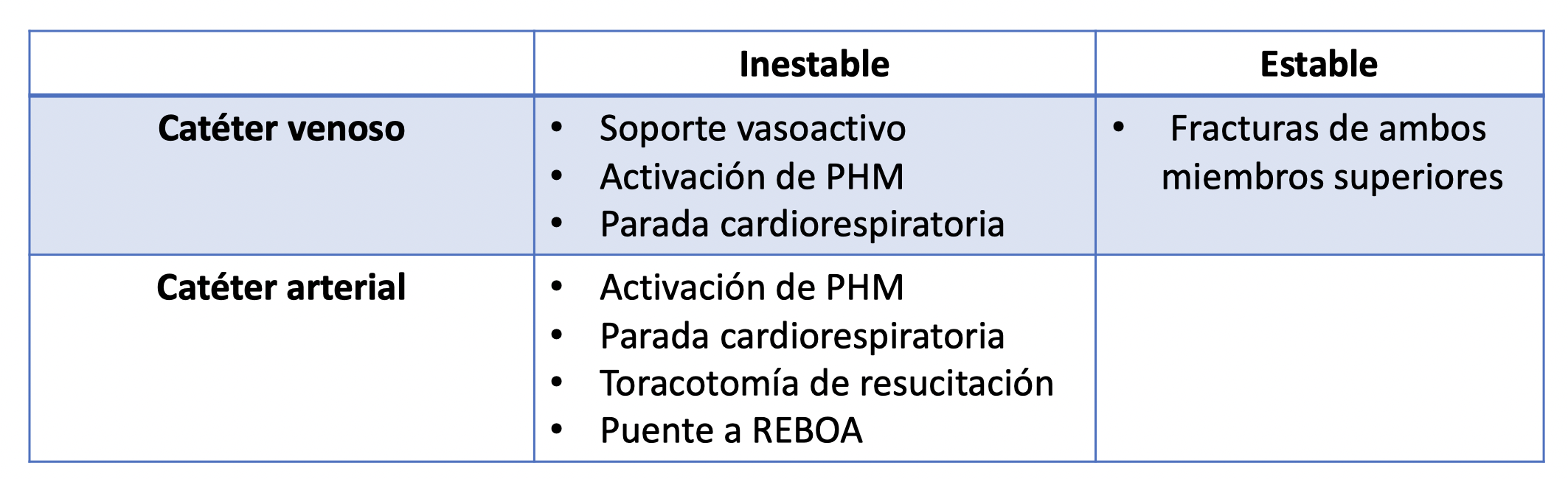 En pacientes hemodinámicamente estables, la colocación del