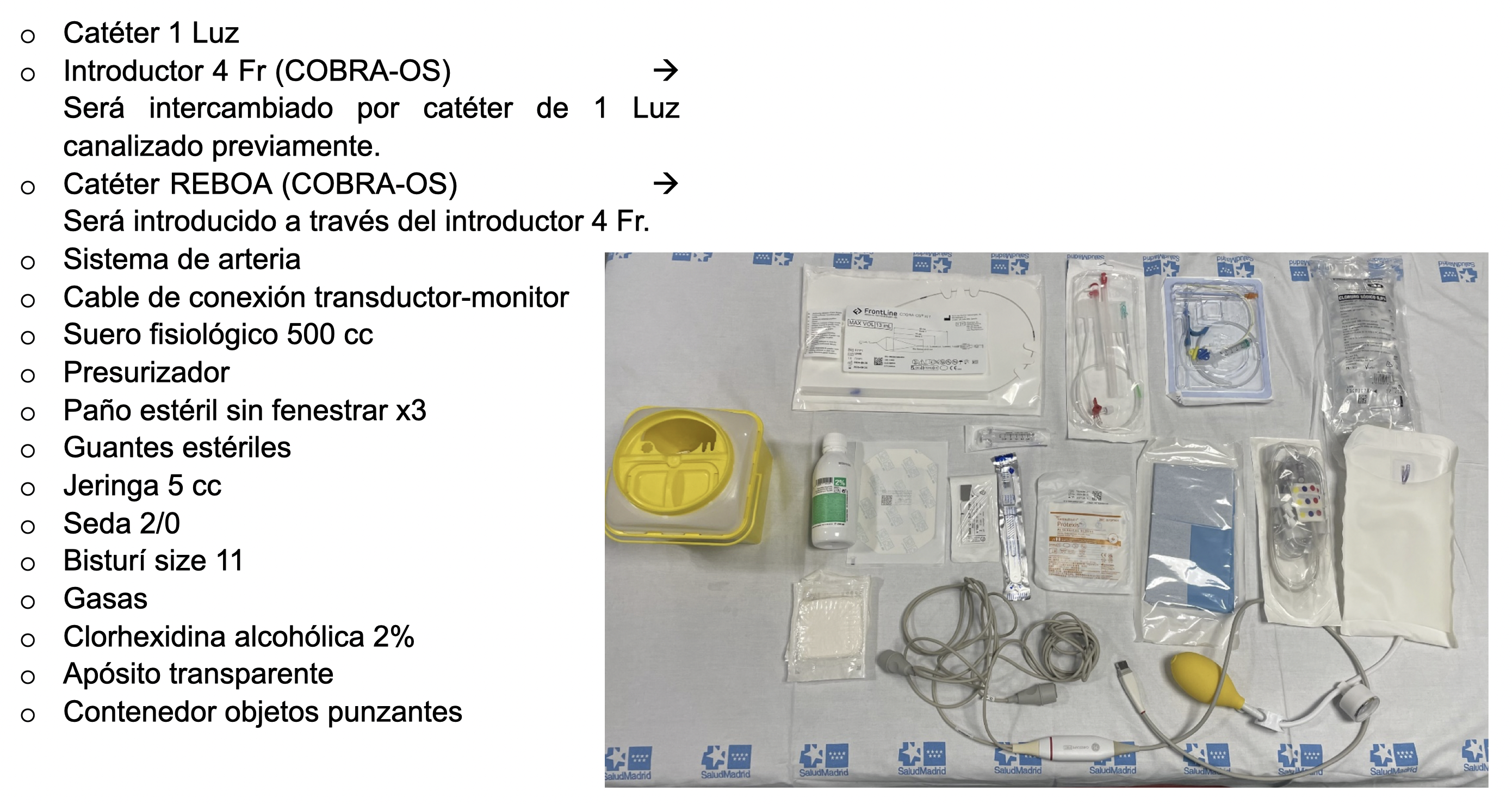 indicaciones, vías de acceso y material necesario para asegurar una